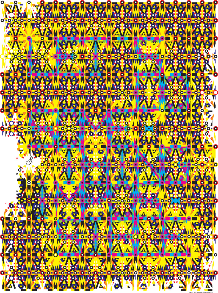 In 2003 Marian left her firm and “strategic design” behind to embark on the work that she has since become internationally known for. Describing herself as a graphic artist, working primarily with custom type and ornament, Bantjes’ highly personal, obsessive and sometimes strange graphic work has brought her international recognition and fame as a world-class visual designer. Bantjes is known for her detailed and lovingly precise vector art, obsessive hand work, patterning and highly ornamental style.