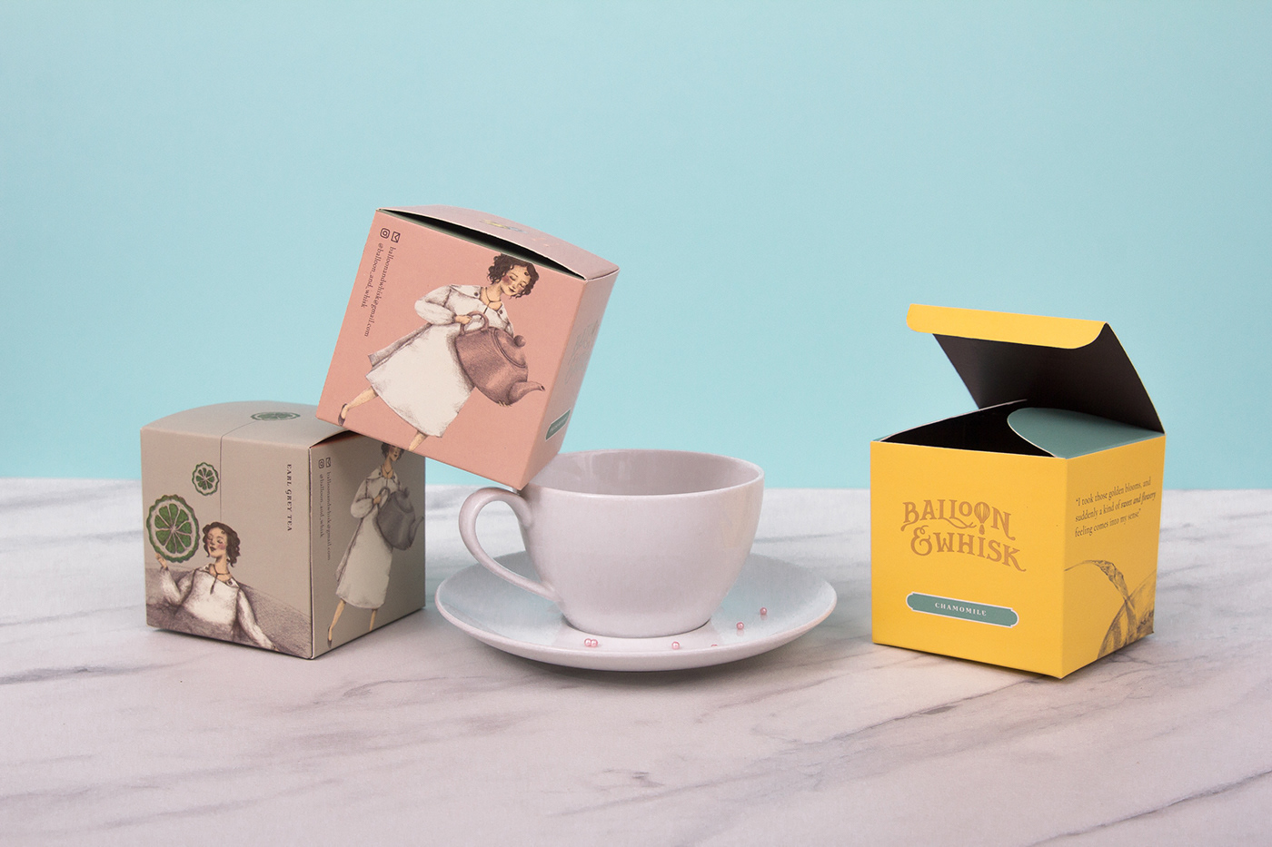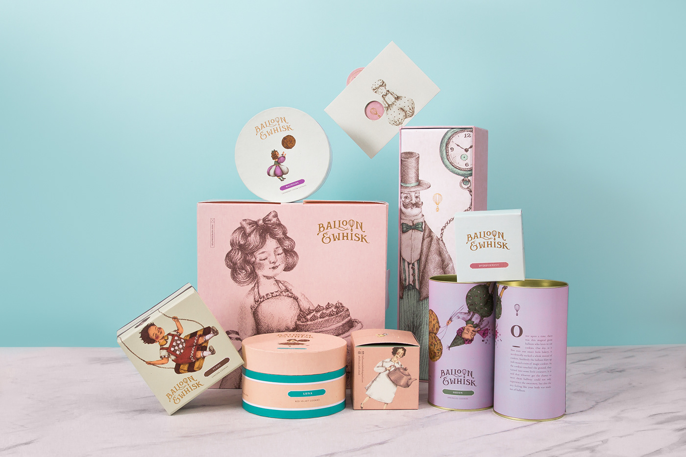 The branding revolves around the ‘light’ or ‘air’ theme, a theme shared in common by ‘balloon’ and ‘whisk’. Balloon contains air, whereas whisk is a cooking utensil used to incorporate air into a mixture. The ‘light’ theme is prominent as well in the illustrated characters, each representing different flavours and delicacies.