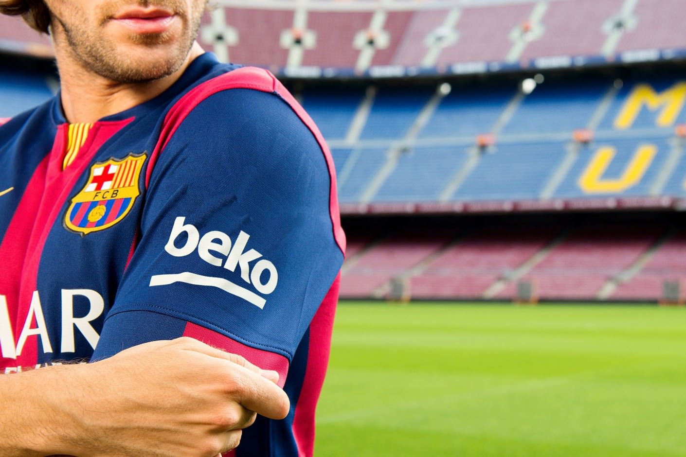 The new Beko logotype is youthful and approachable, with an angled underscore that suggests energy and optimism. The blue color in the logo is a brighter shade of the navy blue that Beko has traditionally used. In 2014, Beko entered into a sponsorship agreement with FC Barcelona, one of the most famous soccer clubs in the world, and the new visual identity appears on team jerseys and stadium signage