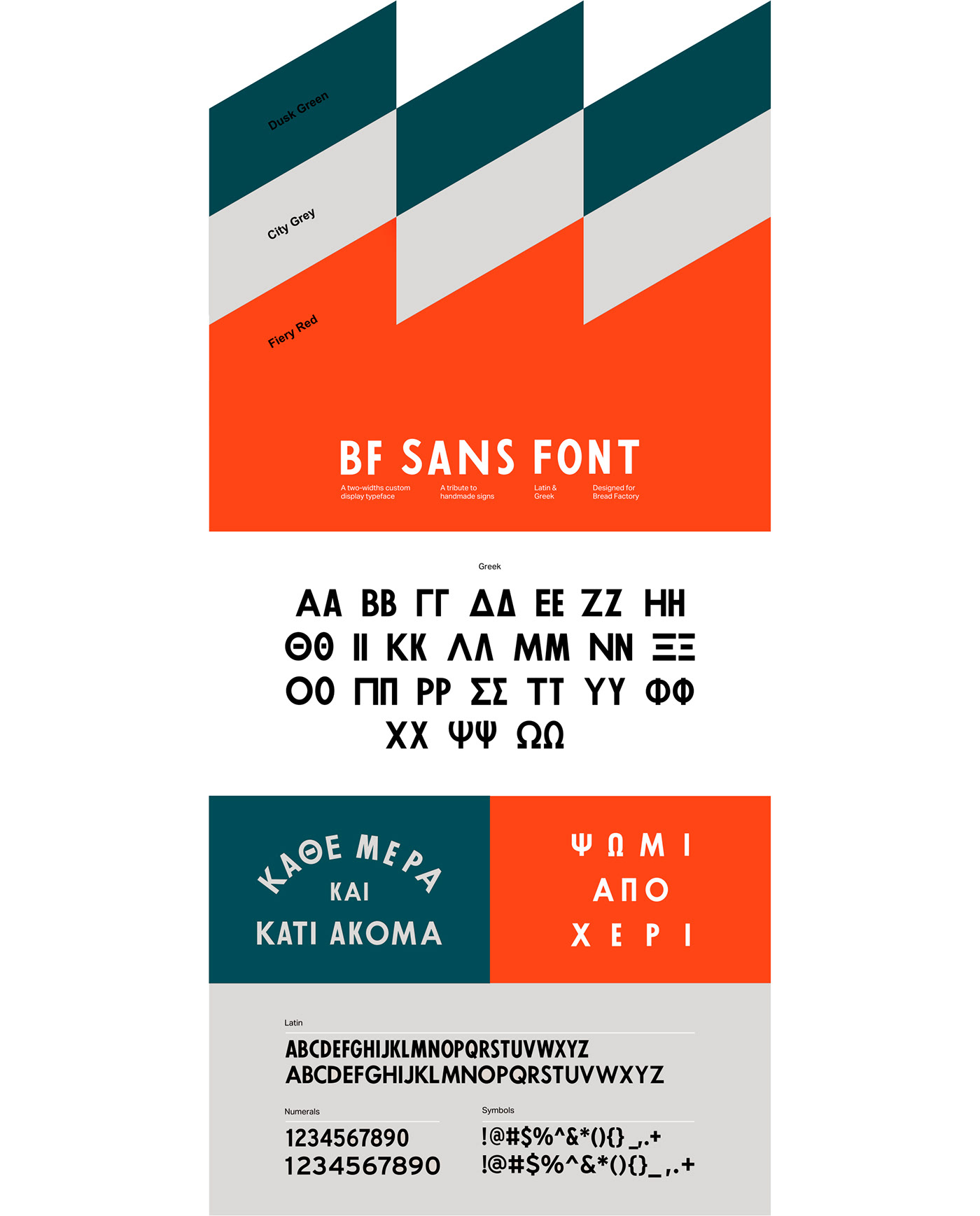 Bread Factory is a multi-purpose hall combining a bakery, a pastry shop, and a restaurant, now listing six branch stores, and they assigned us the design of their new visual identity in order to obtain a fresh look & feel. While keeping the concept of the factory, we chose an abstract path in order to create a bold logo. This allowed us more freedom and flexibility on its uses. Alongside this, we selected a stylish colour palette that enhances the formation of an easily discernible identity. The custom, double-width typography we created is inspired by the aesthetic of hand-made signs, expressing the handcrafted procedure of the brand’s offerings. The conceptual eye-catching illustrations that can be found on the packaging are generating exuberant feelings, complementing the brand’s new inventive universe.‪‬