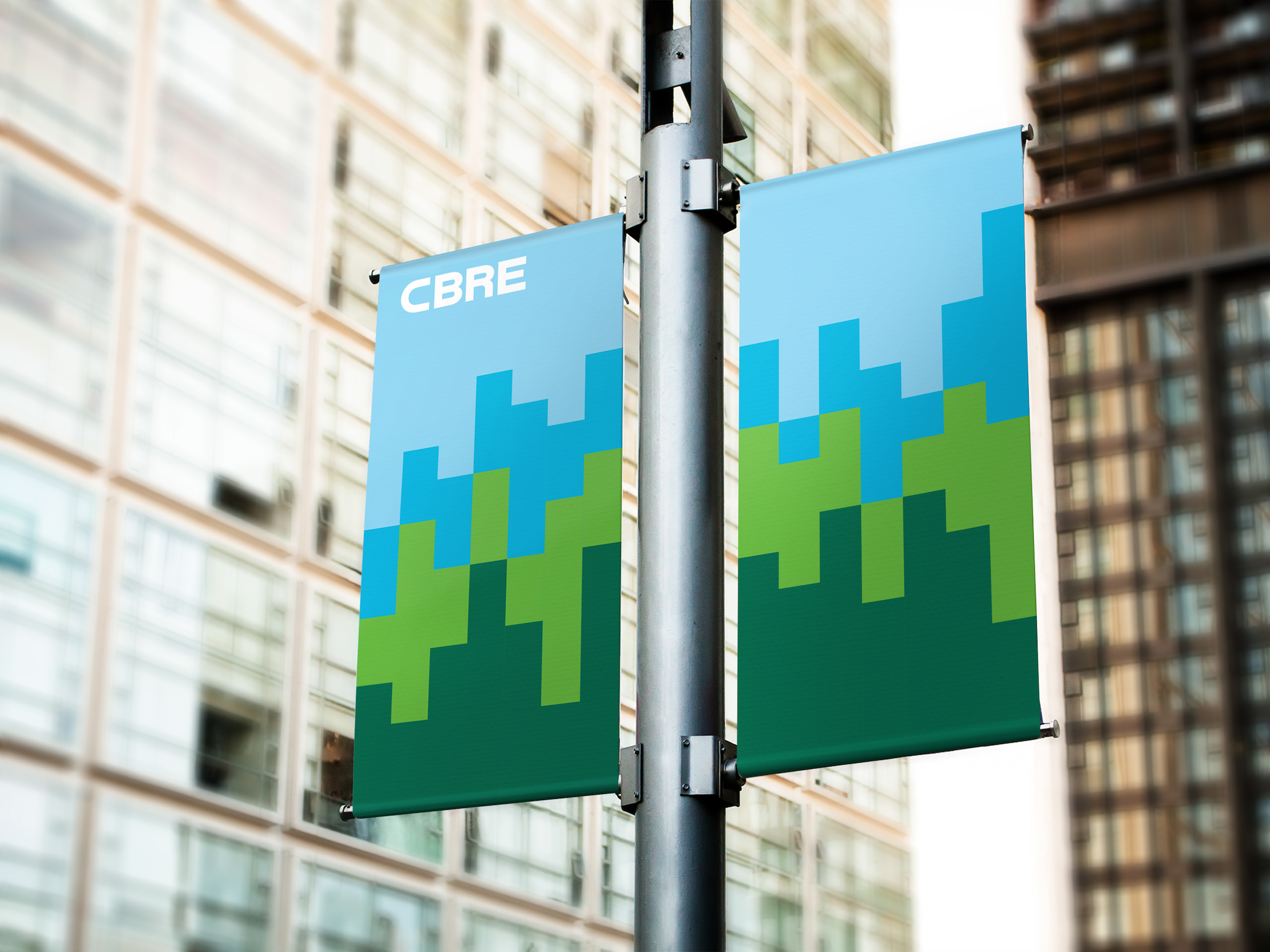 The commercial real estate and investment group CBRE is the largest company of its kind in the world with over 90,000 employees, 480 locations,and more than $13 billion in assets. Formed as a merger between the former Coldwell Banker (CB Commercial) and Richard Ellis International,the combined entity required a strong, distinctive identity to minimize confusion with other similar names in the real-estate industry. The blocky, horizontally extended letterforms for CBRE stand out clearly on signs, print,and digital materials all over the globe.