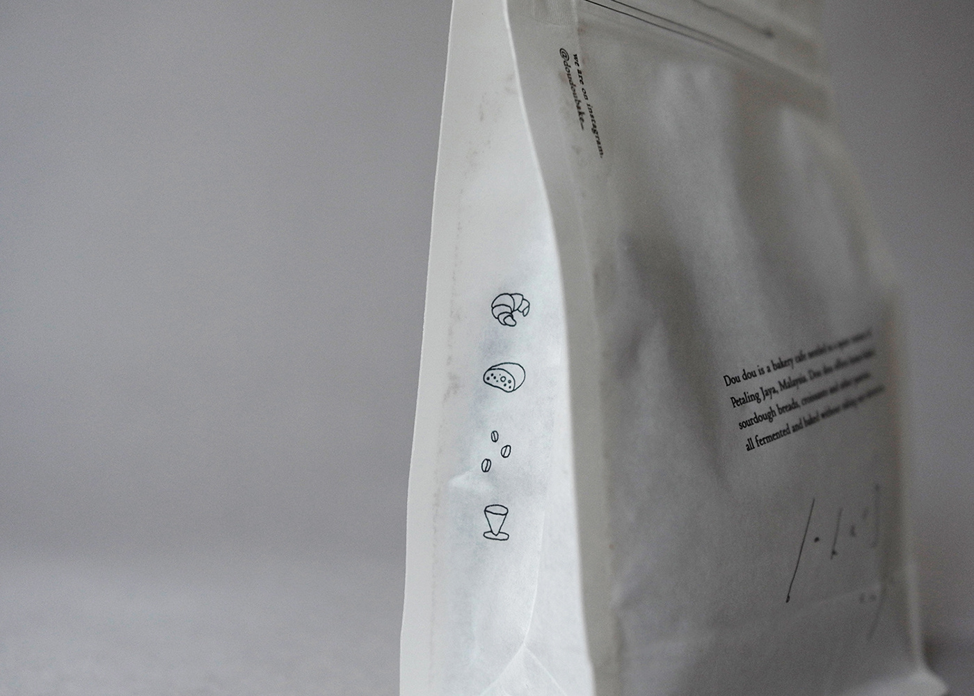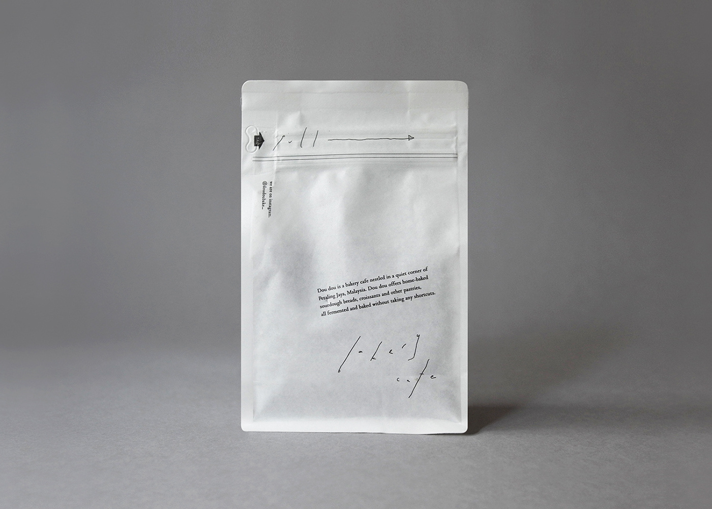 Branding and packaging design for a bakery cafe ‘dou dou’ in Petaling Jaya, Malaysia. The branding is characterised by ovals that are drawn from the shapes of doughs. No alignment, no straight lines—the loose graphics are designed to complement the carefree, honest and easy-going personality of the neighbourhood bakery.