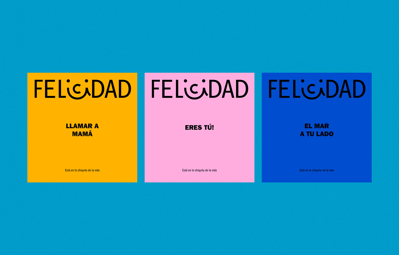 We took the challenge personally and asked friends and family about what made them happy. Answers were all over the place, but there was one common trend: Happiness lies in the small things of life. We created a simple and powerful brand identity that reminds Felicidad’s clients that happiness is found in the little things.