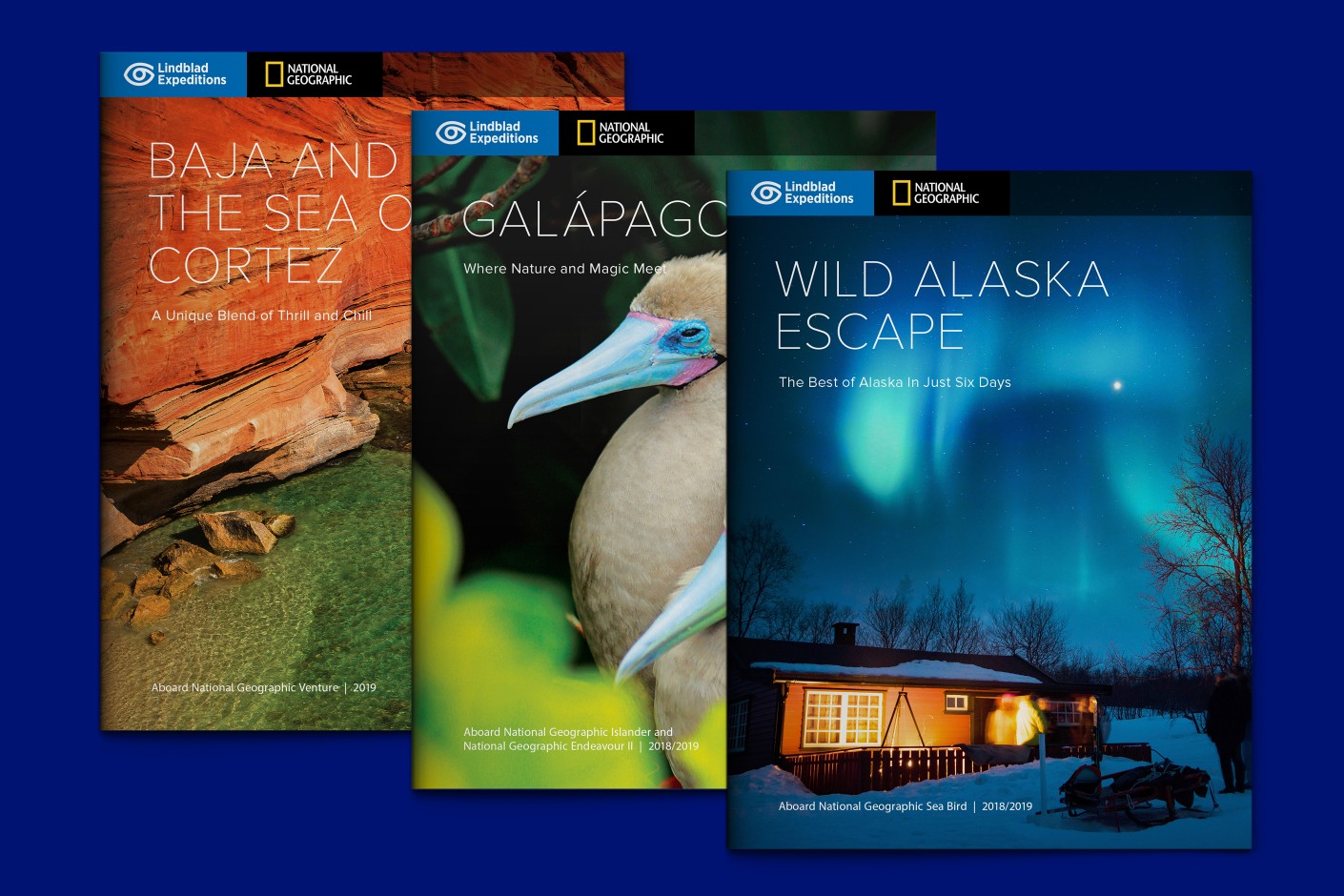 The new identity brings the Lindblad eye and the National Geographic rectangle into a proportional and consistent relationship. The system facilitates flexible identification and is easily integrated into various formats and layouts.