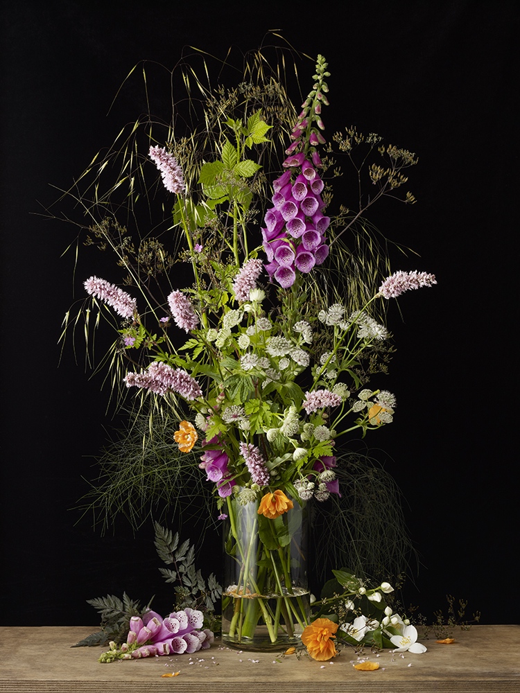 Kevin follows a botanical approach when shooting his subjects, incorporating his knowledge of the history of plants and flowers to create appealing images with a portrait-like edge. In Kevin’s work, the photo acts as a memento of the scene itself, of the perfectly arranged flowers, and the life that exudes out of them even after they are taken out of their natural habitat. Images such as Allotment Plants 2 and Mixed Plants 5 hark back to traditional still life settings, where the image lingers on horizontally and the dark backdrop enhances the light in the foreground.