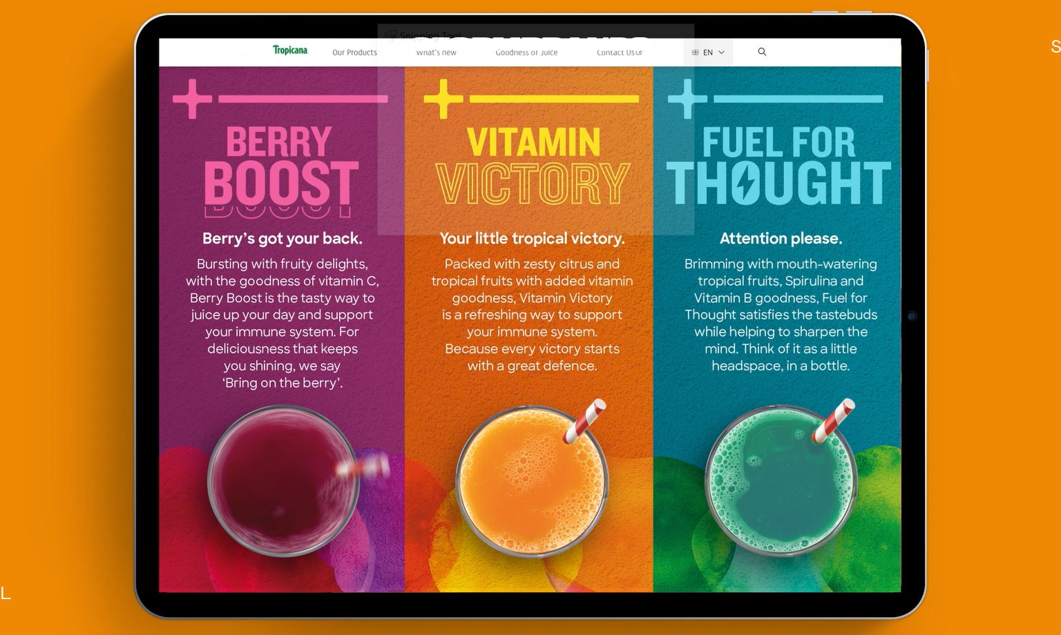 To build on the mainstream appeal of its core range, and appeal to young health hackers looking for easy ways to get more ‘good stuff’ into their bodies, we helped Tropicana launch their new vitamin-rich juice range: Tropicana+. Replacing Tropicana Essentials, it meant the brand could now re-enter the health and wellness sector with a powerful new proposition.